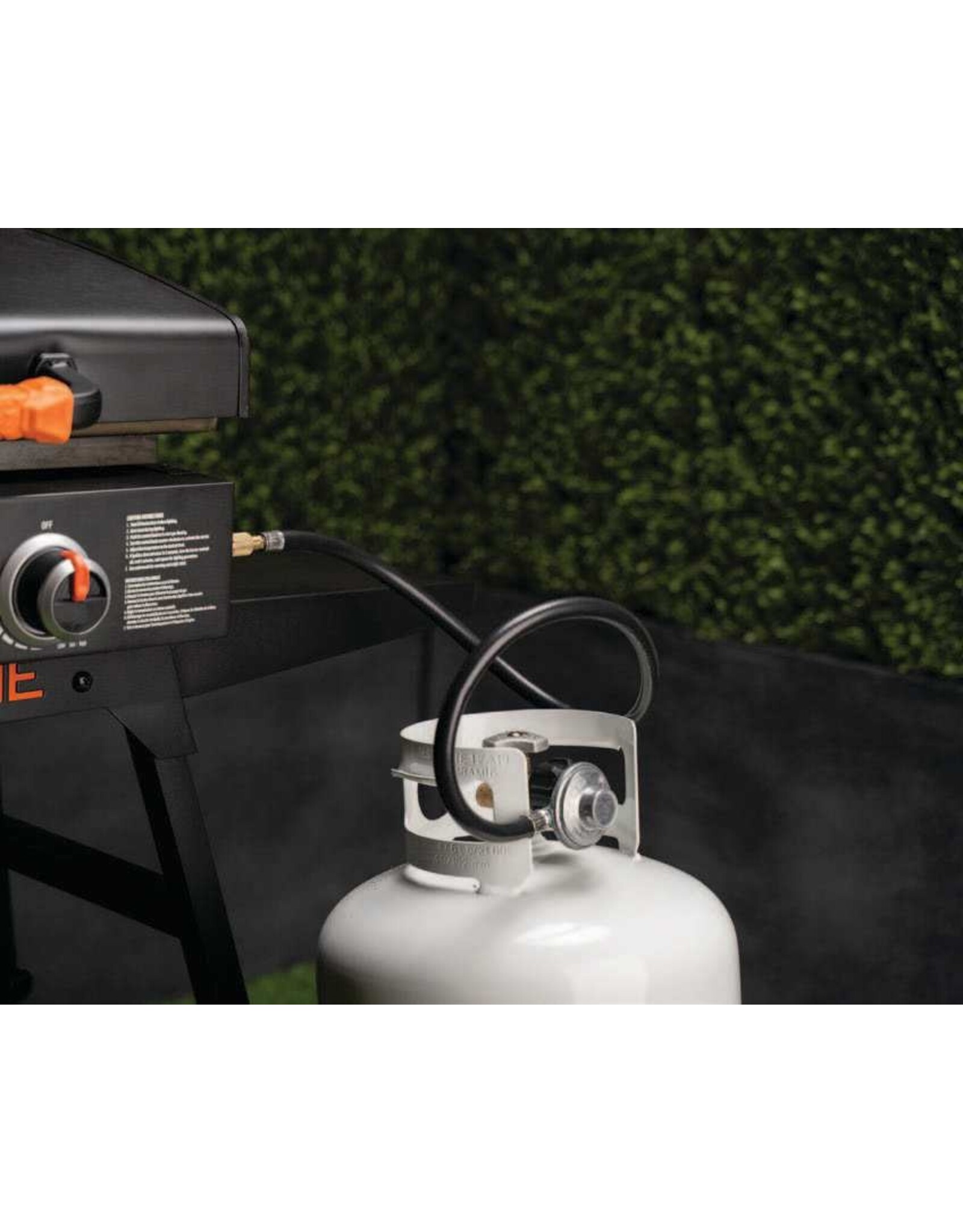 The 3-foot Propane Adapter Hose with Regulator allows you to switch from a 1 pound propane bottle to a bulk (20 pound) propane tank. The connector is specifically designed to work with the Blackstone 17" & 22" Tabletop Griddles and the Griddle Charcoal Grill Combo.